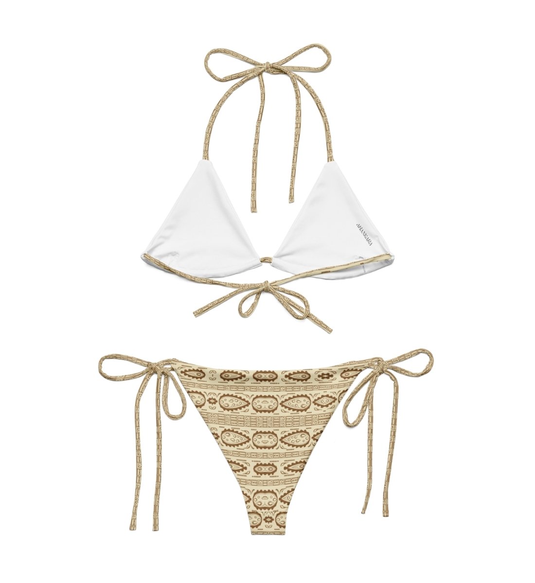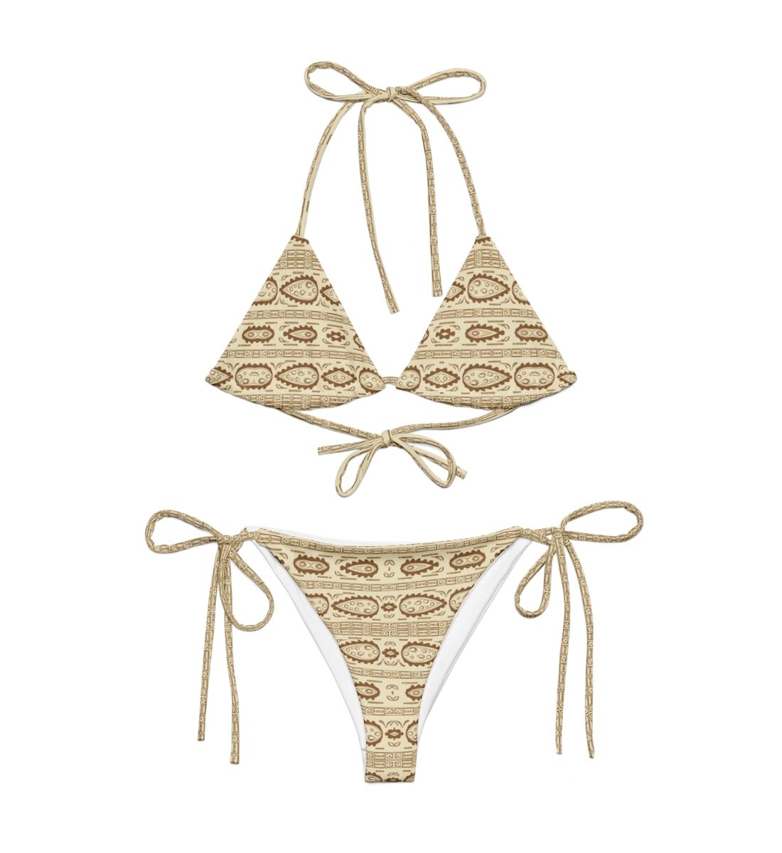 Der Damen Bikini “Greko” ist aus recyceltem Material und dein nachhaltiger Bikini für den Sprung ins kühle Nass. Erlebe den Sommer in ästhetischer und nachhaltiger Mode mit dem Schnürr Bikini Set für Damen “Greko”. Dieser wunderschöne Damen Bikini vereint ein weiches Hautgefühl, Boho-Vibes und Nachhaltigkeit in einem atemberaubenden Design. Bedruckt mit einem Boho Muster in sanften Braun- und Sandtönen, strahlt der Bikini Damen “Greko” eine natürliche Eleganz aus, die perfekt zu dir passt und deine innere Göttin zum Vorschein bringt.